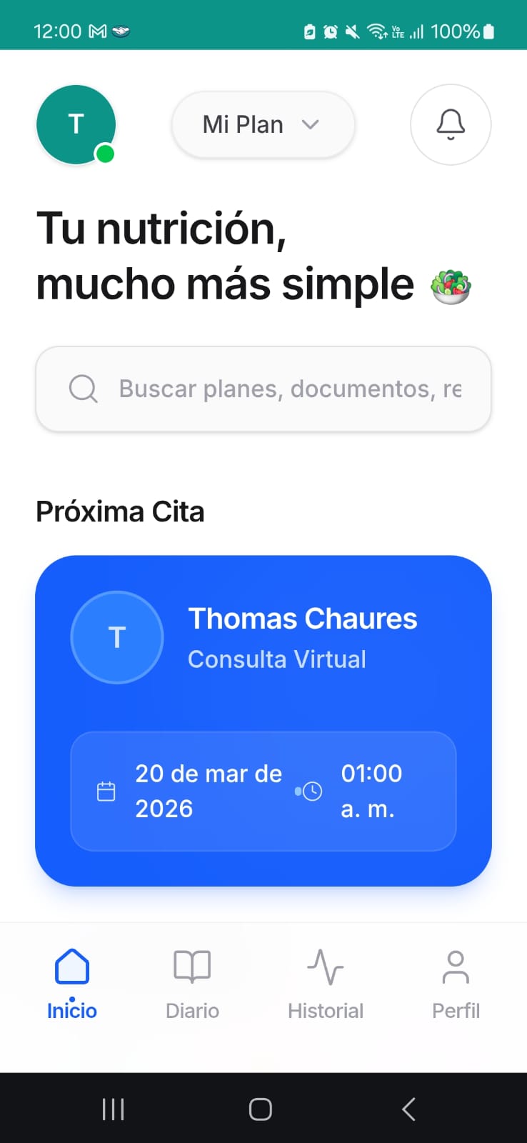 Nutricionista · Consultorio privado, Buenos AiresCada paciente accede desde su celular con permisos que vos asignás. Todo lo que necesita, en un solo lugar.