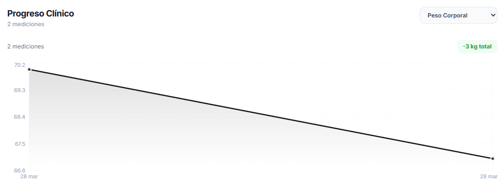 Peso, medidas y adherencia con gráficos claros que podés mostrar en cada consulta.